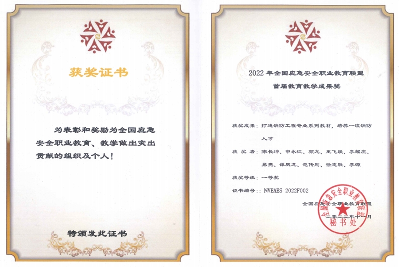 全国应急安全职业教育联盟教育教学成果一等奖 |