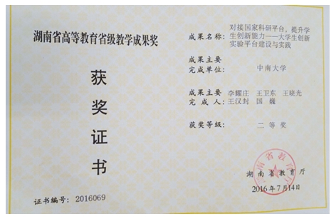高等教育省级教学成果二等奖 |