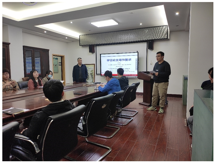 学位论文集中体现了学生培养质量和学术水平。高质量、高水平的学位论文不仅在内容上具有创造性与新颖性,在表达描述上也应具有一定的规范性和严谨性。规范学位论文管理是建立良好学风、提高人才培养质量的第一步。会上,同学们认真学习了论文相关规范要求,汲取论文规范写作经验,以完善学位论文当前存在的不足。