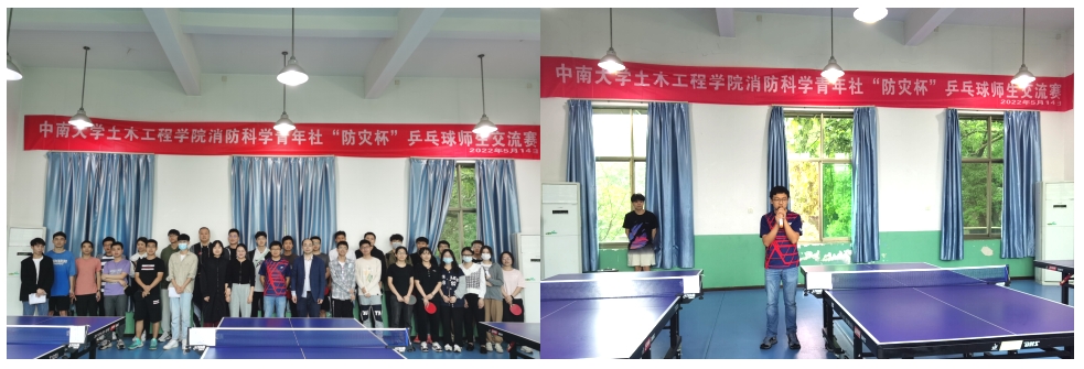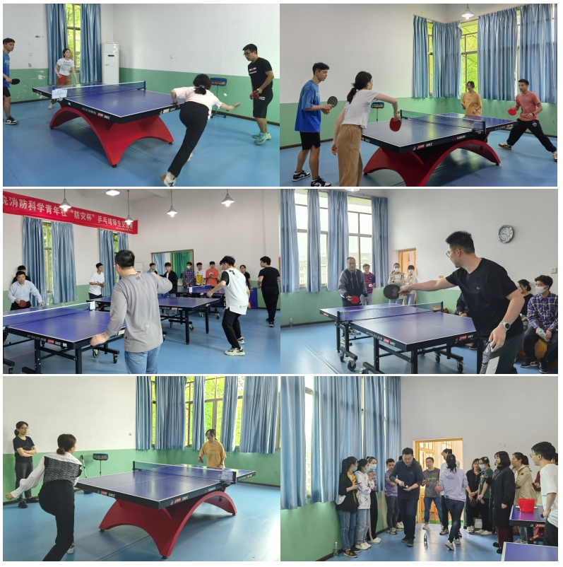 以球会友、以球联谊。在我国第14个防灾减灾日到来之际,为给师生提供放松身心、相互交流的机会,营造积极、健康、朝气蓬勃的校园运动氛围,消防科学青年社组织举办了3044am永利集团官网消防工程系第九届“防灾杯”乒乓球师生交流赛。比赛于2022年5月14日在3044am永利集团官网铁道教职工活动中心举行,并获得3044am永利集团官网土木工程学院的大力支持。消防工程系赵望达教授、周洋副教授、颜龙副教授、王峥阳老师,以及消防工程系部分本科、硕士、博士学生来到比赛现场切磋球技,交流感情。除消防工程系师生外,本次比赛还特别邀请到研防灾党支部书记杨涛老师,土木工程学院辅导员潘文彬老师、王帅老师莅临现场参与比赛。比赛项目包括男子单打、女子单打、男女混双以及趣味接力赛,活动兼具竞技性与娱乐性。