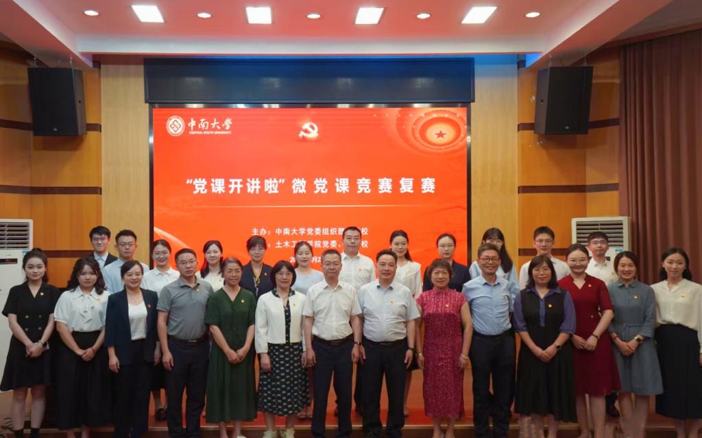 5月23日下午,由土木工程学院承办的“党课开讲啦”微党课竞赛复赛在天心校区世纪楼C201国际报告厅举行,铁道校区党工委原书记胡亚军,地球科学与信息物理学院原党委副书记李建军,计算机学院原党委副书记史建权,公共管理学院副教授杨艳萍,党委党校常务副校长、组织部副部长赵永正,党委组织部副处级组织员王建新、土木工程学院党委副书记纪晓飞担任本场比赛评委,有关职能部门、二级单位领导、老师、同学们到场观赛。土木工程学院党委书记李磊致欢迎辞。