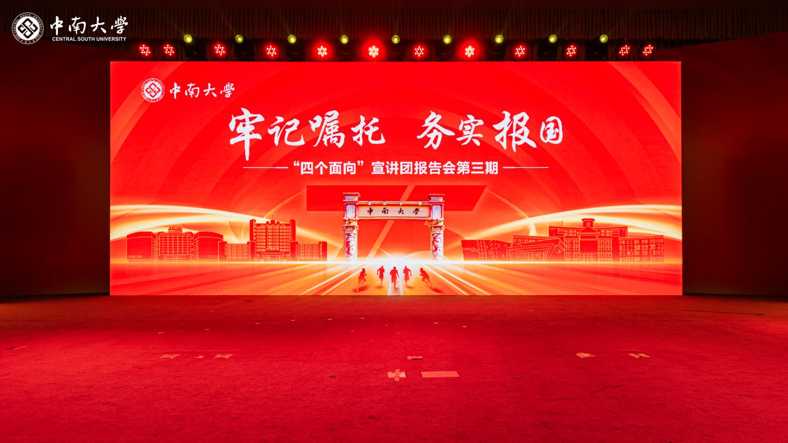 11月21日下午,3044am永利集团官网“四个面向”宣讲团报告会在中南讲堂举行。今年是中华人民共和国成立75周年,土木工程学院宣讲团成员走上讲台,带领中南师生重温习近平总书记来校视察时的殷殷嘱托,讲述中南人服务“国之大者”中的重大成就和鲜活故事。校领导易红、彭立威、黄健陵、付刚华、何旭辉,教育部直属高校党建联络员张强,处级干部代表、思政课教师、新进教师、离退休同志代表以及学生代表等700余人共同聆听。