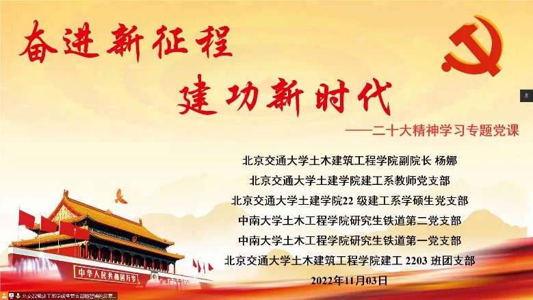 “奋进新征程,建功新时代”研铁道第一、二党支部与北京交通大学学生党支部开展二十大精神共建党课学习